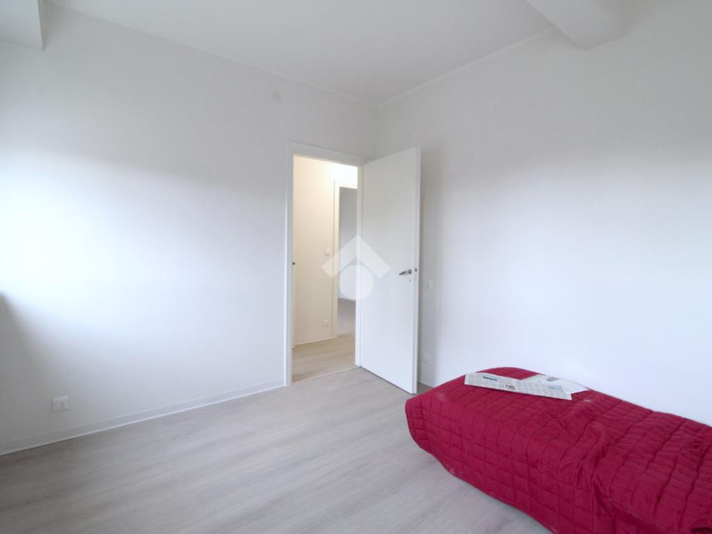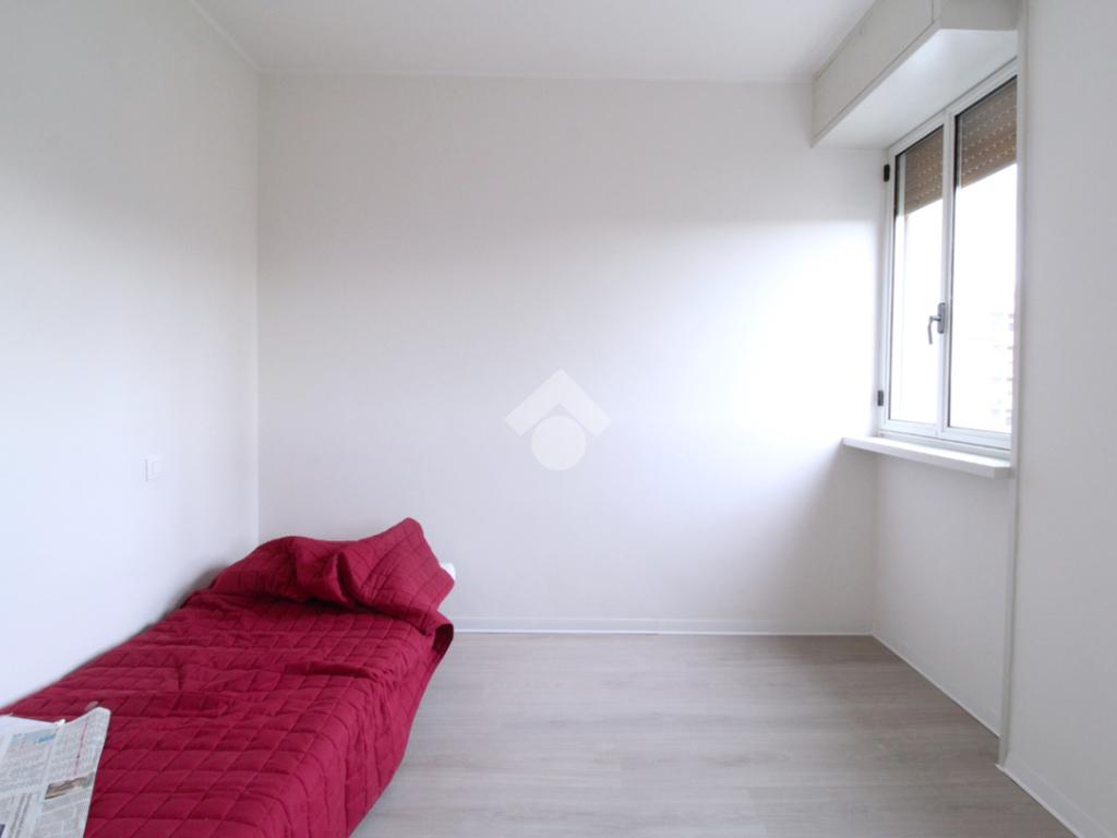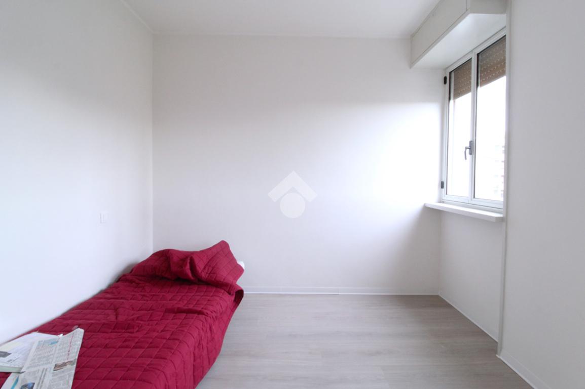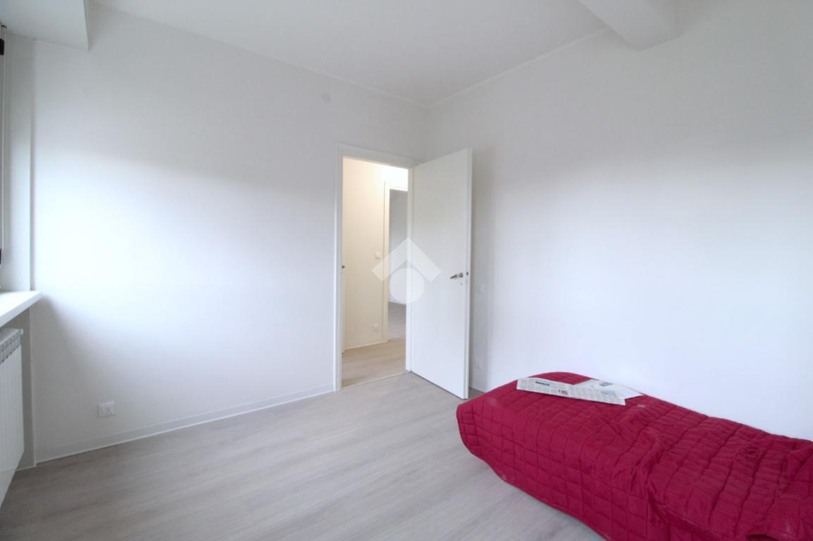 La zona notte, ben separata dalla zona giorno, si compone di due camere da letto di generose dimensioni: una matrimoniale e una camera singola. Completano la soluzione due bagni dei quali uno finestrato.