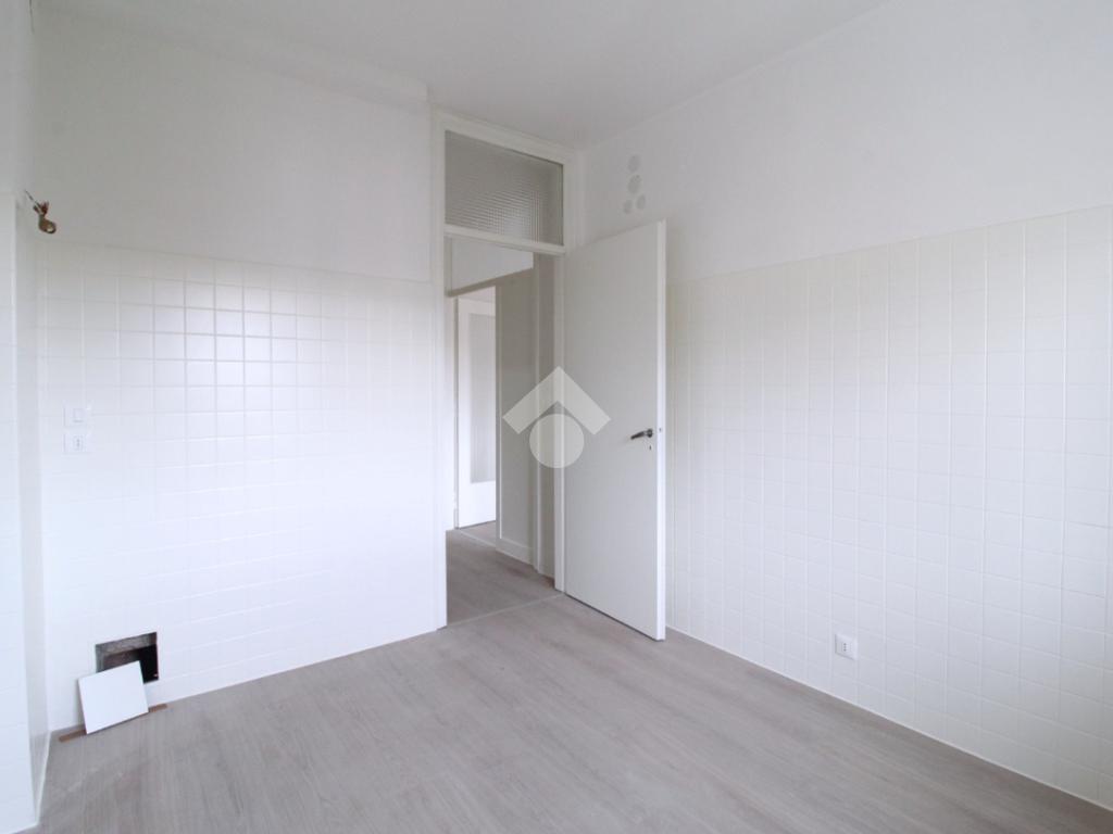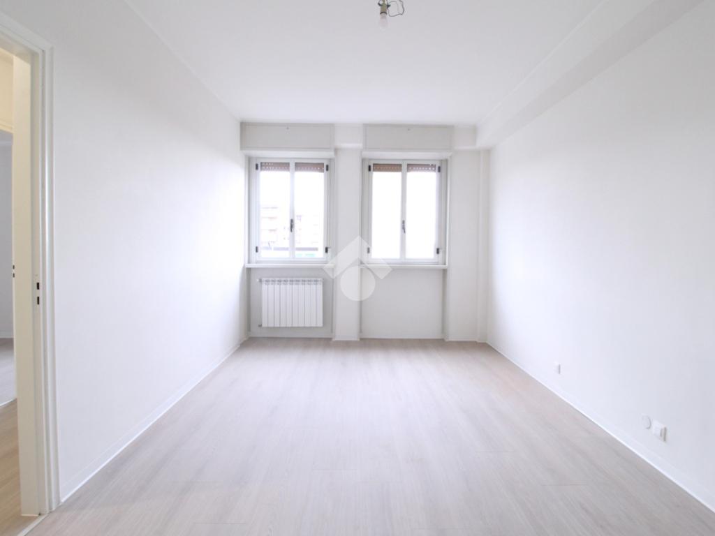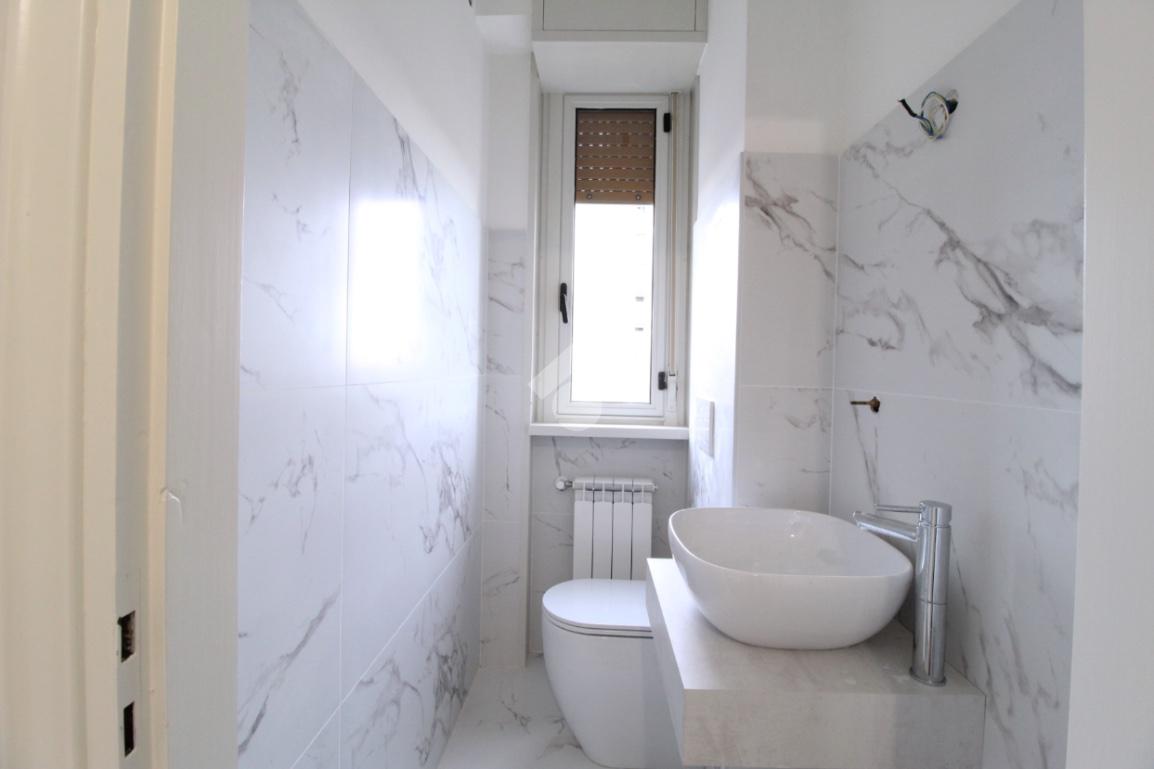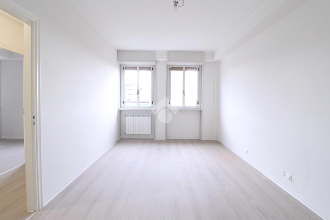 La zona notte, ben separata dalla zona giorno, si compone di due camere da letto di generose dimensioni: una matrimoniale e una camera singola. Completano la soluzione due bagni dei quali uno finestrato.