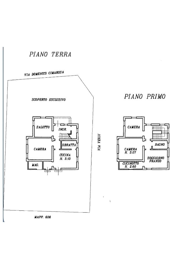 La proprietà in oggetto, completamente da ristrutturare, è ubicata in Via Cimarosa e si sviluppa su due livelli, per una superficie coperta complessiva di circa 177 mq, con giardino privato di oltre 300 mq che circonda l’abitazione.